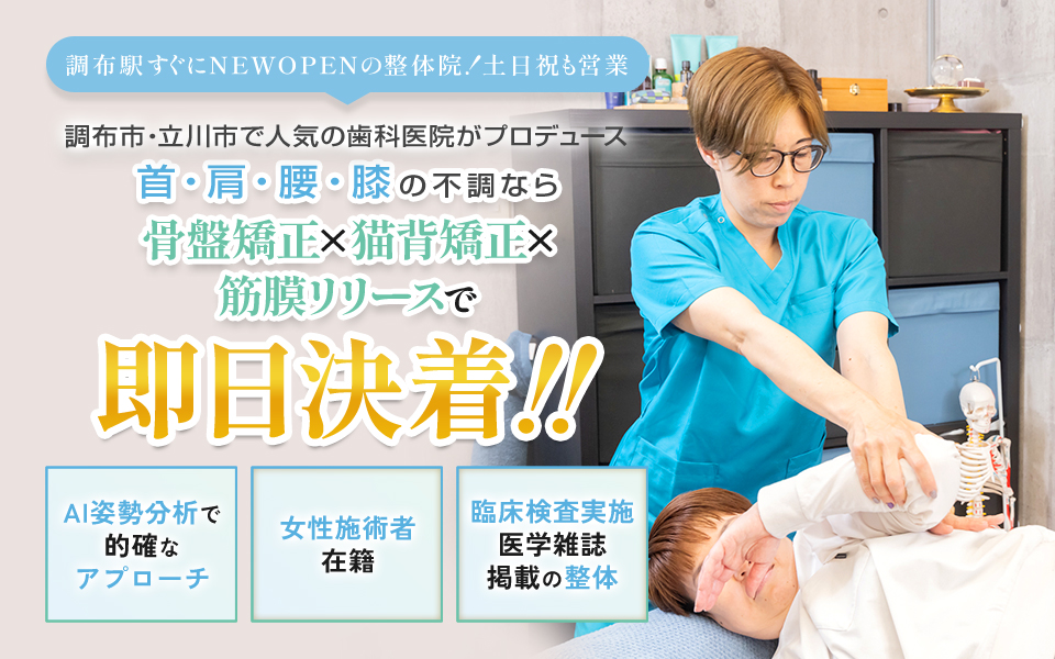 当院では、「解剖学」「西洋医学」「東洋医学」の考え方をもとに生み出された話題のBMK整体を採用しています。身体の土台である骨盤のバランスを整え、自律神経の乱れや血液・リンパ・脳脊髄液などの体内循環の改善を図ることで、全身の不調にアプローチします。